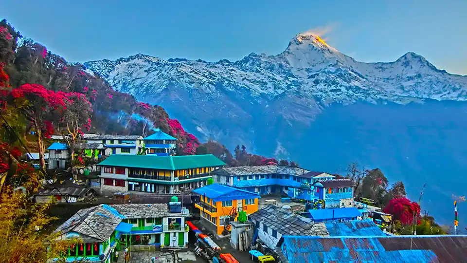 Early morning drive to Sarangkot Hill for breathtaking sunrise over Annapurna, Dhaulagiri & Mt. Fishtail.